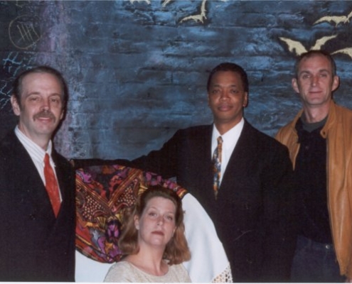 This was the second time we staged Dracula and for it I wrote a brand new script. A more conventional take with less laughs and a more serious tone. Rather than the Anne Rice influenced, pun fueled, way down South in the New Orleans version. We had done it at the Elmwood playhouse some fourteen years before. Still fun to perform with many of the same actors I had worked with through the sixteen years we had been in existence.