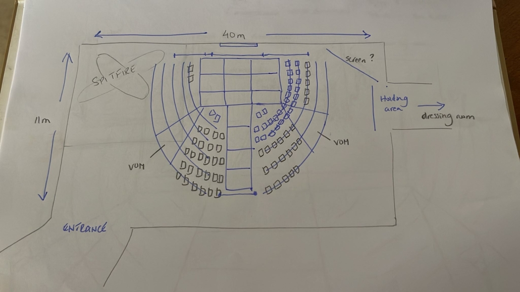 This time Jackie did not want to produce the show in either Inces Hall or the John Mac. Which we had used before to allow as many people as possible to see the show. This time she was after a more intimate experience for the audience. She took this idea and merged it with a visually stirring setting she had had her eye on for a while. Which brought us into the heart of the World War II tunnels and ‘Spitfire Hall’.