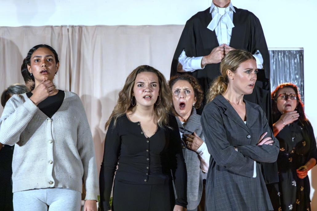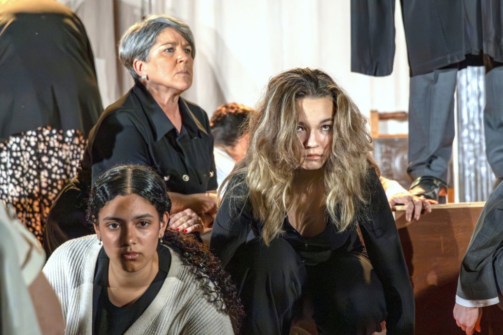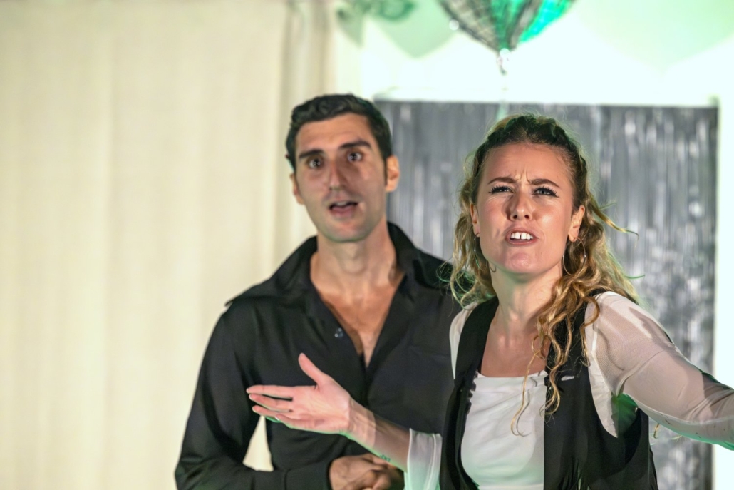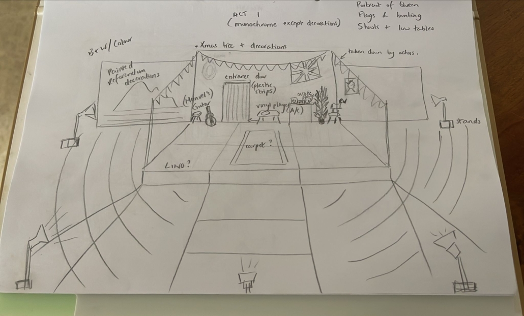 As always we split the workload. Jackie handled the directing a mammoth task with scenes which went from an intimate duo of characters to over twenty on stage running around as a rampaging Greek chorus. While I concentrated on working with Sam Smith, our sound person to produce the large soundtrack of music Jackie had chosen. And, directing some four small scenes I had written for a character called Salvador who was ‘El chico de la radio’.