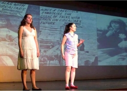 As we’d done before, we split the workload. Jackie handled the major directing of the piece. A mammoth task of ‘Broadway’ proportions considering the size of the cast. Scenes which went from two characters to fifty on stage. I focused on rehearsals with our talented actors Gemma Leppard & Laura Seed who played the ‘Sisters of the wind’. This was our ‘Greek Chorus’ to help bring the audience along as we covered some fifty years of history. Jackie wrote scenes from the every day with her wonderful ear for our Llanito tongue. The tales of woe, hardship, passion and humour. The patio gossip and wishful dreams of this generation. Which graced their lives at this crucial cultural crossroads. The finished production was a joyous celebration.